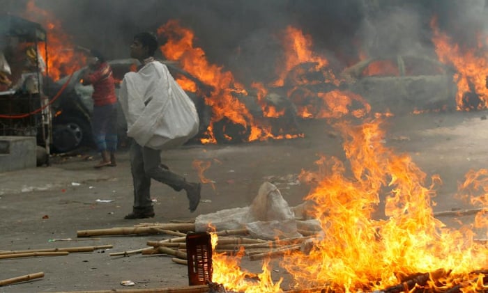 Protest by supporters of Bangladesh’s leading Islamist party, Jamaat-e-Islami, turned violent after the execution of its leader Abdul Quader Mollah in 2013. Photograph: Andrew Biraj/Reuters