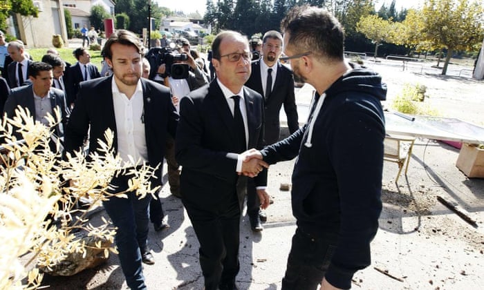 People look at damage in the aftermath of violent storms and floods in Biot, south-eastern France Photograph: Jean-Christophe Magnenet/AFP/Getty Images