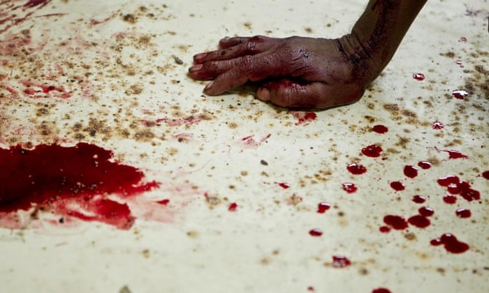 A man who was severely injured with a knife by unidentified assailants waits for medical treatment at the emergency room of a public hospital in San Pedro Sula, Honduras. Photograph: Esteban Felix/AP