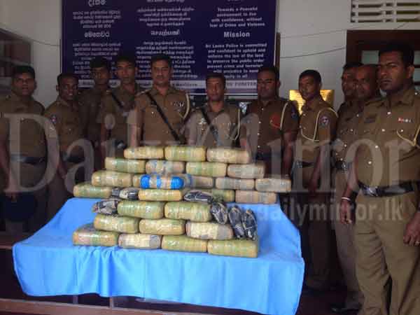 A 27-year-old man, alleged to have had in his possession 60.250 kilos of Kerala Ganja worth more than Rs.10 million, was arrested at Polkandi in Valvedditturai. The Police said the man, a resident of Point Pedro, was arrested yesterday night during a raid carried out by the Valvedditturai Police on a tip-off received by Inspector Manjula Perera. They said Kerala Ganja was smuggled into the country abroad fishing boats. (Romesh Madushanka) -
