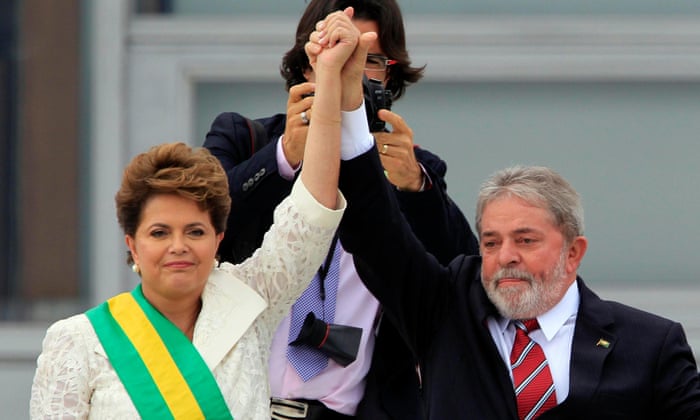 Brazil’s president, Dilma Rousseff, with Luiz Inácio Lula da Silva outside Palácio do Planalto, Brasilia, in 2011. Photograph: Paulo Whitaker/Reuters