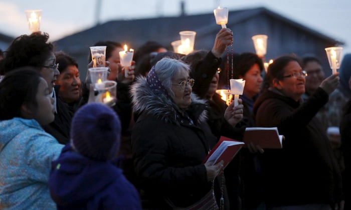 People take part in a candlelight vigil Attawapiskat. Photograph: Chris Wattie/Reuters