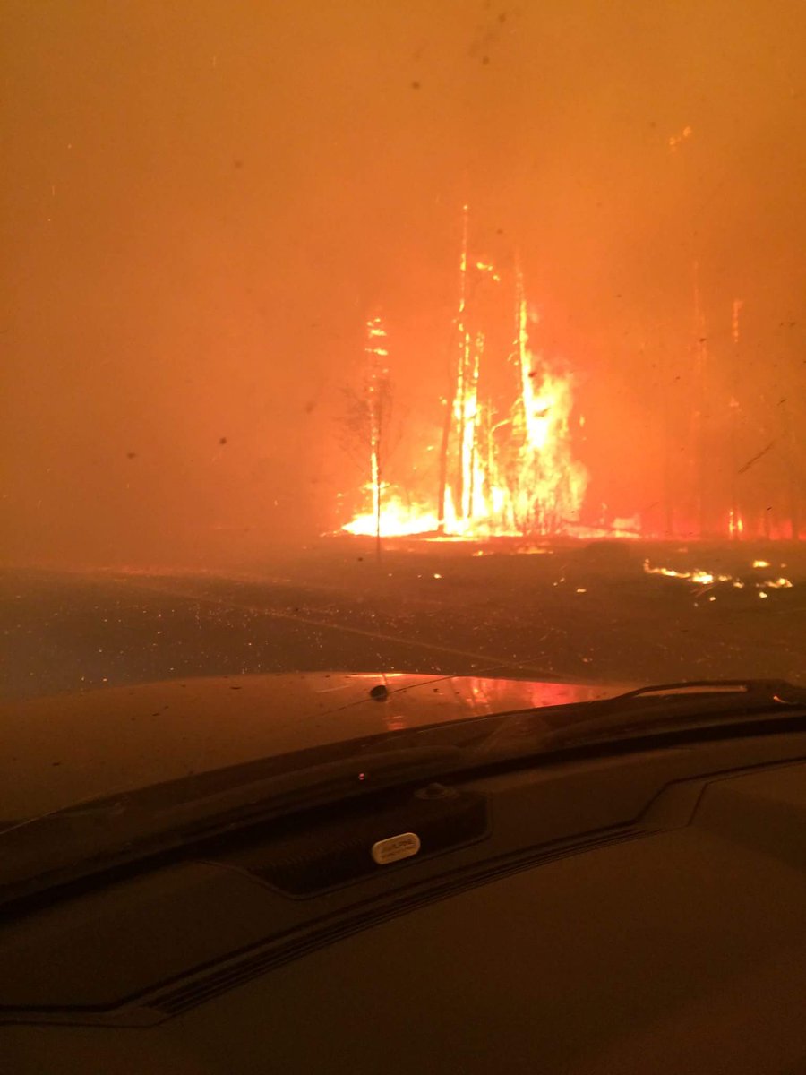 Those with cars were directed to Highway 63, where vehicles were at a near-standstill. Residents watched as flames jumped the road.
