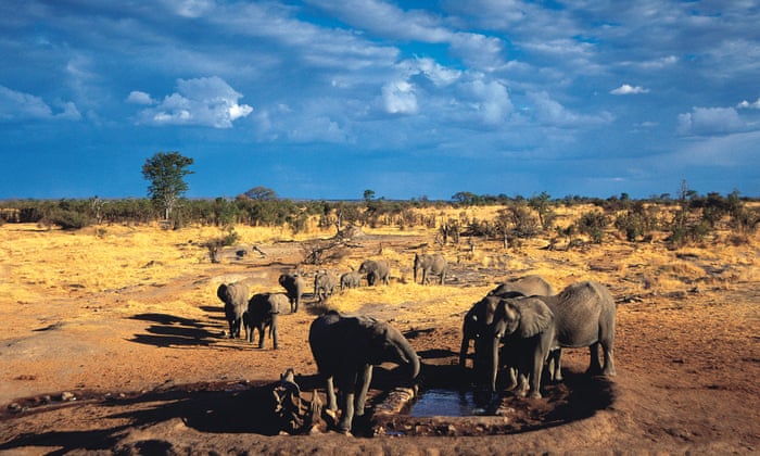 Elephants gather at Big Toms waterhole in Hwange national park, Zimbabwe. Just 450,000 elephants exist in the whole of Africa. Photograph: Alamy--A Zimbabwe National Parks official inspects the country’s ivory stockpile in Harare. Photograph: Tsvangirayi Mukwazhi/AP