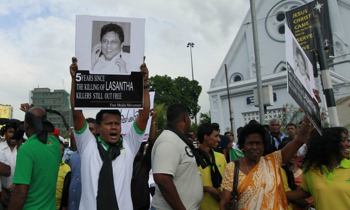 - The caption in this article was corrected to state that Lasantha Wickrematunge was assassinated by gunmen on motorcyles as he went to work in Colombo, not “killed during a protest in Colombo”.