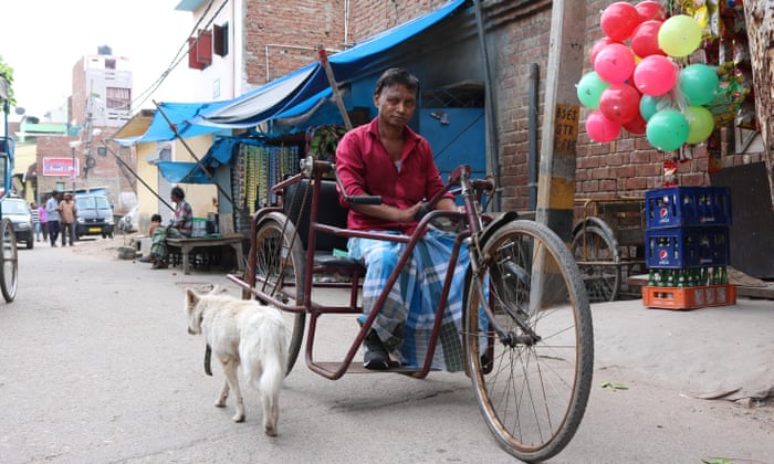 Rammurat, a 25-year-resident of Tahir Pur, who contracted leprosy when he was aged 14. He is one of 2,000 people living with the disease in the east Delhi colonies. Photograph: Michael Safi for the Guardian--The government has provided residents of Tahir Pur who have leprosy with hand-operated rickshaws. Some have lost tissue in their feet due to leprosy-related injuries. Photograph: Michael Safi for the Guardian