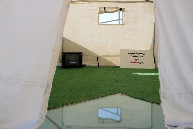 “Colonial forces create divisions whenever and wherever they can,” Bell said on the rooftop of Al-Ma’mal Foundation for Contemporary Art in the Old City of Jerusalem where his tent had been erected. “We must find every way possible to get our message across.”