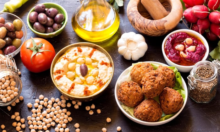 In spite of the name, the Mediterranean diet does not have to feature squid, anchovies, hummus and pitta bread. It is descriptive, not prescriptive – taken to mean a diet that includes a lot of fruit and vegetables, olive oil, nuts, legumes, some fish and dairy and little red and processed meat. It usually includes a small amount of red wine.