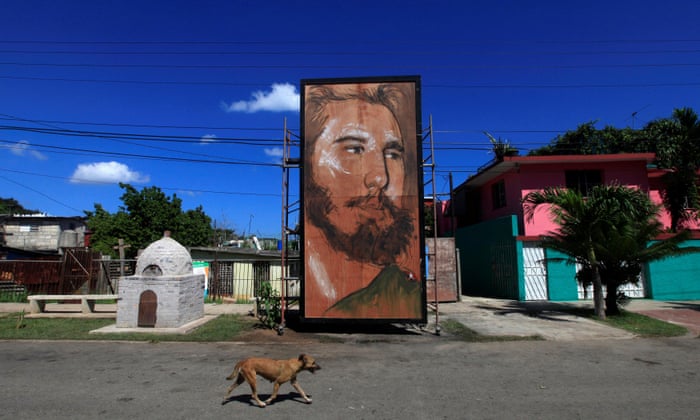 A dog walks past a painting depicting Fidel Castro by Cuban artist Kcho in Havana, Cuba, in August 2016. Photograph: Enrique de la Osa/Reuters