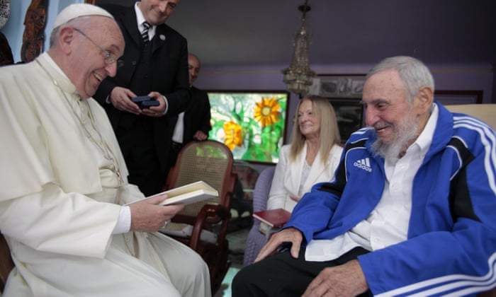 Pope Francis meets Cuba’s Fidel Castro, as Castro’s wife Dalia Soto del Valle looks on, in Havana in 2015. Photograph: Alex Castro/AP
