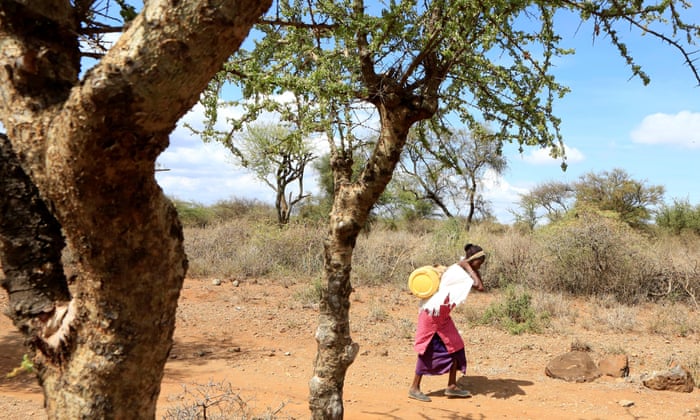 A woman carries a water bin on her back in Magadi, Kenya. Photograph: Anadolu Agency/Getty Images