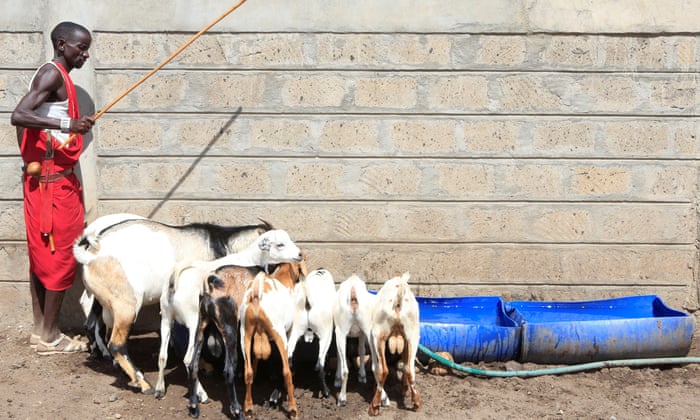 Farmers give bottled water to their goats in Magadi, Kenya, in March 2017. ‘We can do something to reduce the scale and severity of this emergency. But time is running out.’ Photograph: Anadolu Agency/Getty Images