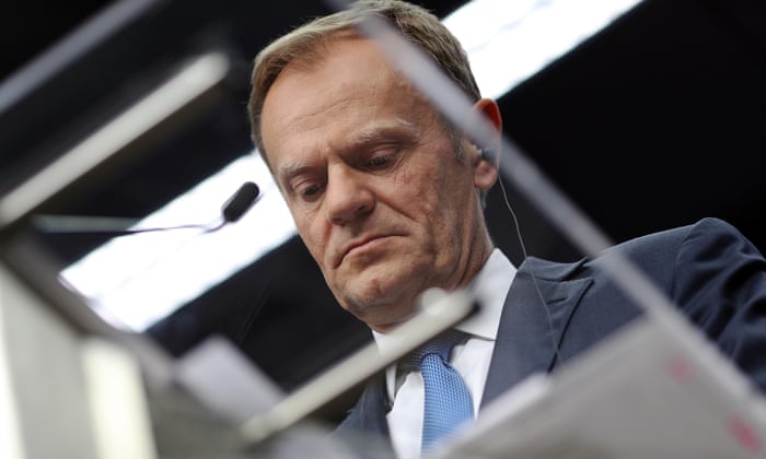 Donald Tusk speaks during a press conference after an EU Council meeting on 29 April about Brexit. Photograph: Dan Kitwood/Getty Images