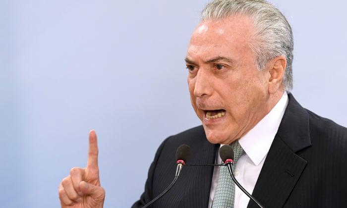 Brazil’s president, Michel Temer, has been formally accused of conspiring to silence witnesses in a corruption investigation. Photograph: Evaristo Sa/AFP/Getty Images