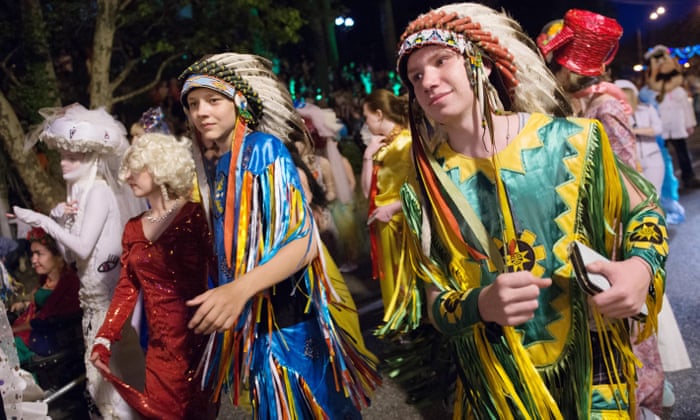 Some participants in the Carnaval Sochi Fest 2017 parade wore blackface, while others carried bananas. Photograph: Artur Lebedev/Tass