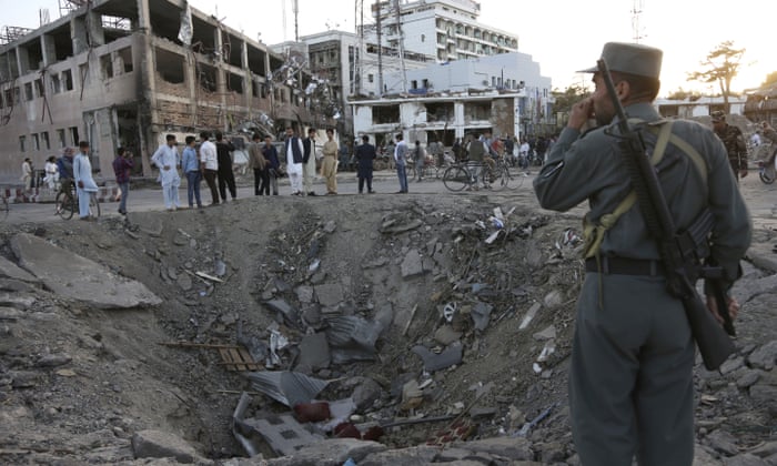 A large explosion in front of the German embassy in Kabul in May killed at least 150 people and wounded hundreds. Photograph: Rahmat Gul/AP
