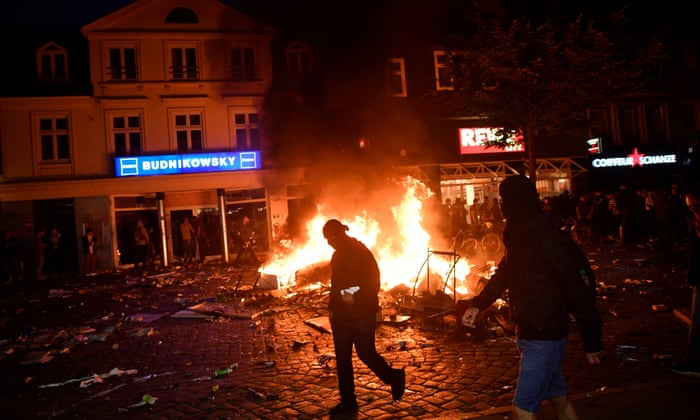 Police forces around Germany dispatched reinforcements to help 15,000 officers already deployed to Hamburg for the summit as violence escalated. A police spokesman said that a group of about 60 masked protesters attacked three police vehicles with molotov cocktails, and that a flare fired at a police helicopter only narrowly missed its target.
