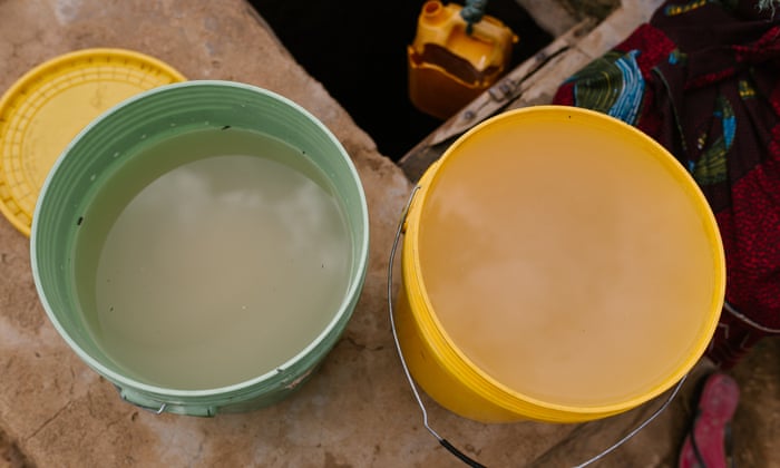 Buckets of water from a privately owned shallow well on the edge of Nyarugusu – the closest water source to Nyarugusu Dispensary, a 15-minute drive away. Photograph: Sameer Satchu/WaterAid