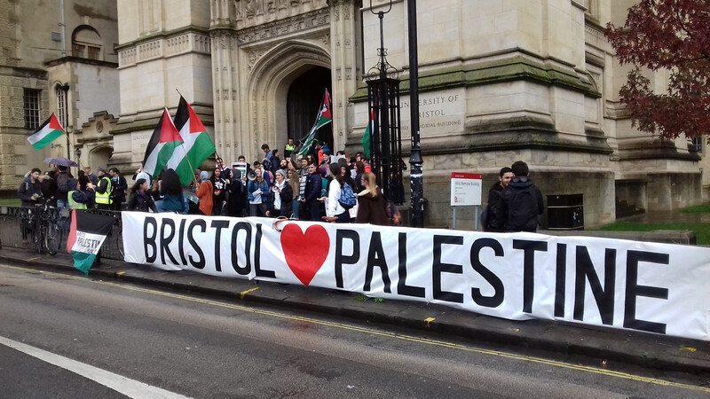 While the British government celebrated the centenary of the Balfour Declaration, students demonstrated their support of Palestinian rights. (Bristol-PSC)