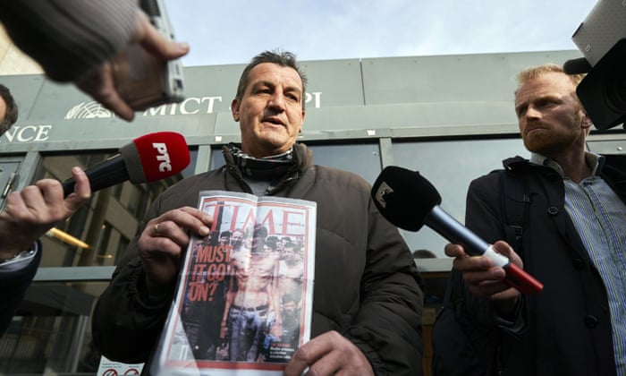 Fikret Alić holds a copy of Time magazine that featured his emaciated image on its cover in 1992. Photograph: Phil Nijhuis/AP