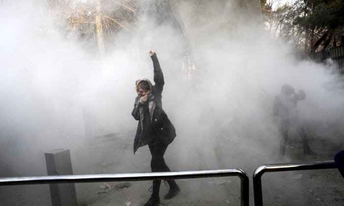 There were turbulent scenes in a number of cities across Iran, including the capital, Tehran, Karaj, Tuyserkan, Hamedan, Arak, Saveh, Amol, Sari and Qazvin. Officials said on Monday 10 people died during protests on Sunday night and at least 400 people had been arrested over the past five days.