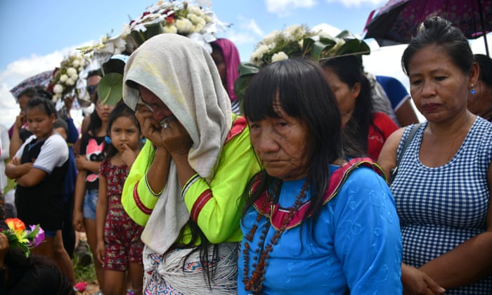 Dan Collyns in Victoria Gracia@yachay_dc-People attend the burial of Olivia Arévalo, who was shot dead near her home. Ayahuasca has been used successfully to treat PTSD and drug addictions, but there is a darker side. Photograph: Reuters
