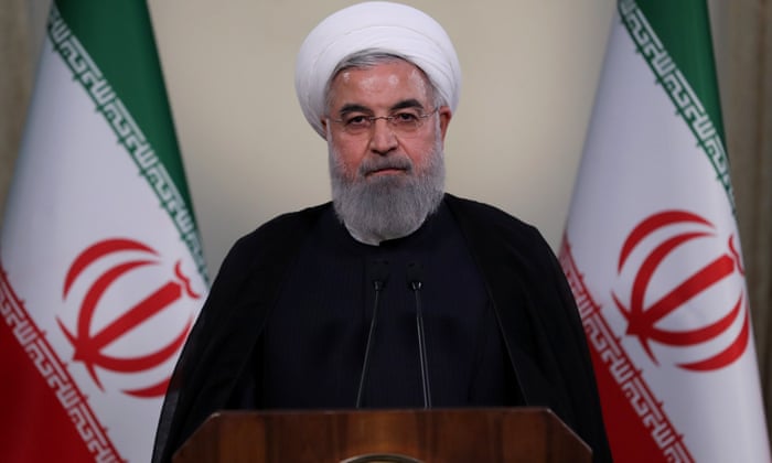 Hassan Rouhani, the Iranian president, holds a press conference about Donald Trump pulling the US from the nuclear deal. Photograph: Anadolu Agency/Getty Images