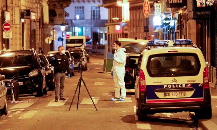 In a series of tweets, the French president, Emmanuel Macron, said his thoughts were with the victims of the attack and praised the courage of police who “neutralised the terrorist”.