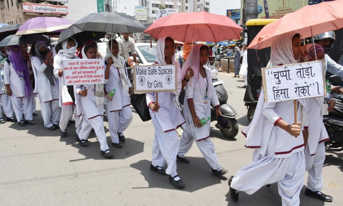 Schoolgirls hold a silent protest rally against the recent rape cases of two teenage girls in the Chatra and Pakur districts of Jharkhand. Photograph: AFP/Getty Images