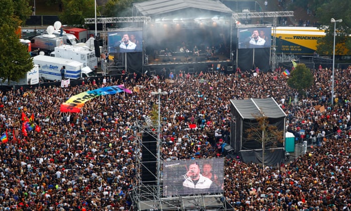 The location of the event in Chemnitz, east Germany, was changed to accommodate larger than expected crowds. Photograph: John Macdougall/AFP/Getty