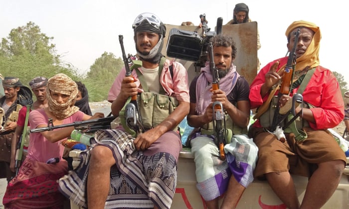 Yemeni pro-government forces gather at Hodeidah, as they battle Houthi rebels for the control of the city. Photograph: AFP/Getty Images