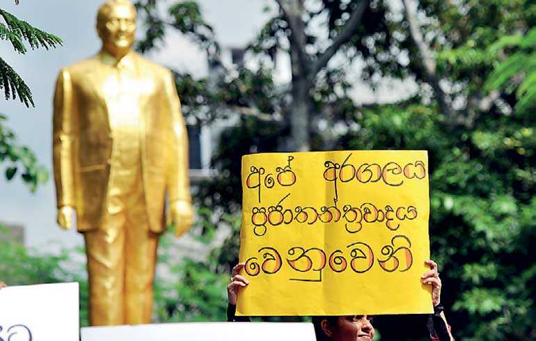 Wednesday, 7 November 2018The issue is not about keeping Ranil Wickremesinghe or getting Mahinda Rajapaksa back; that issue can be fought in the regular battlefield of competitive politics. It isn’t acceptable to play that out through the medium of a conspiracy to violate the Constitution and democratic process. Therein lies the offence against which we all must unite – Pic by Ruwan Walpola