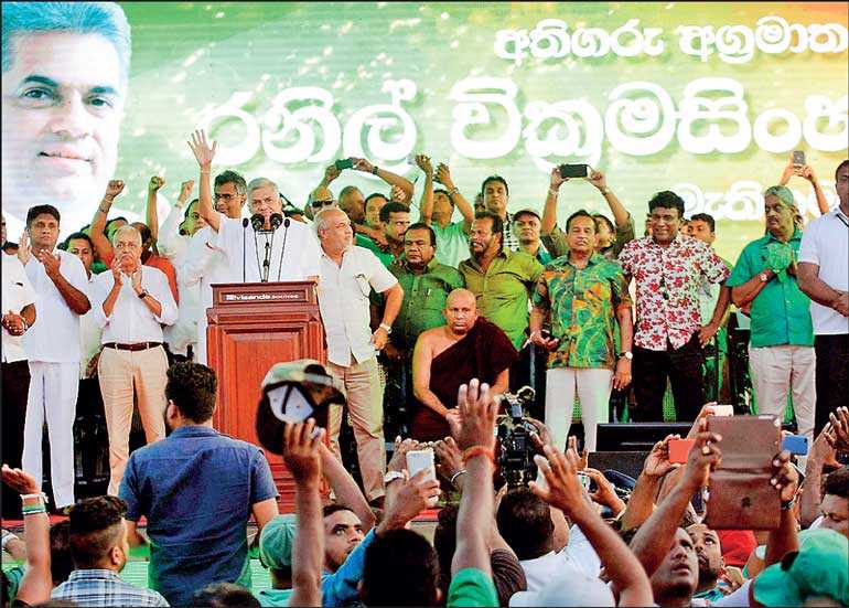 HOW GREEN WAS MY RALLY: As a triumphalist gesture, it was a great excess for the UNP to indulge in. With that said, it probably sent out all the right signals to the watching world. So the GOP and its savvy grandmaster are back at the great game of global politics – Pic by Shehan Gunasekara