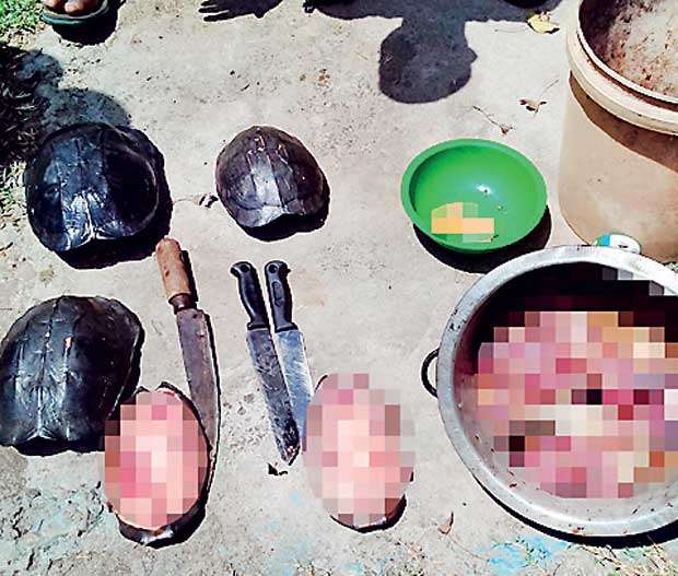 "More than 12 dead tortoises, eggs, meat, and 200 tortoise shells were seized along with the knives used in the activity, some three weeks ago"