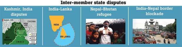 Now let us go into detail on each of these factors.Inter-member state disputes are many: Kashmir, India-Lanka disputes, the Nepal-Bhutan refugee issue and the India-Nepal border blockade, to name a few. Most SAARC analysts blame the India-Pakistan dispute over Kashmir for SAARC’s slow progress. Some pin the blame on the asymmetrical structure of SAARC, with India’s dominance in regional affairs being overwhelming. Yet SAARC has weathered the turbulent sea and reached many a port.