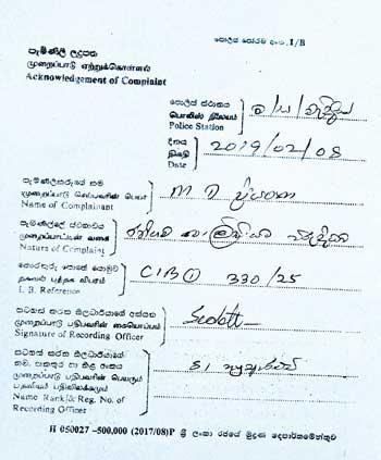 “We went to Rathgama Police to inform about the incident. But they didn’t record our complaint. A police officer named Bandula told us that the police would obtain the information about the whereabouts of Manju by evening and asked us to come after five. We returned and made our complaint. However the reference number relating to the complaint we made was not given to us.
