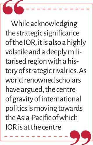 In order to prevent militarisation and preserve trade interests’, countries such as Sri Lanka were at the forefront of promoting the IOR as a zone of peace, which has not gained any traction. Today we see a region that struggles to engage in de-militarisation of the oceans while balancing it with concerns of engaging military might to fight ocean crime, contain potential aggressor states, and revisionist powers.