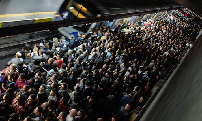 A packed subway platform in downtown São Paulo. Photograph: Nacho Doce/Reuters