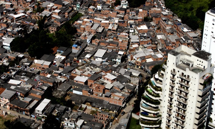 An aerial view of Paraisópolis, the biggest favela in São Paulo. Photograph: Paulo Whitaker/Reuters