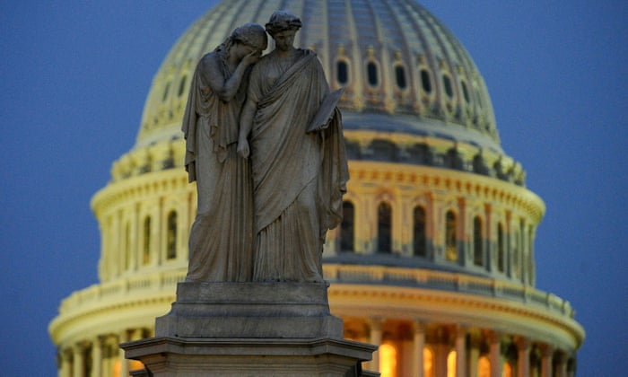A statue representing Grief lays her covered face on the shoulder of the statue representing History on the Peace Monument near the US Capitol. Photograph: Mary F Calvert/ReutersOutraged by what they see as a coverup in the impeachment trial of Donald Trump, grassroots activists are planning a massive “payback project” designed to punish Republican senators at the ballot box.