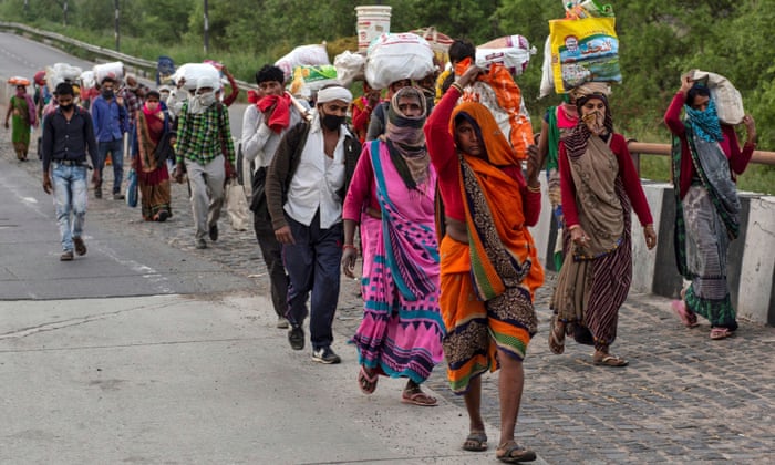 Migrant workers in New Delhi walk home to their village following the lockdown. Photograph: Danish Siddiqui/ReutersAmrit Dhillon in New Delhi-