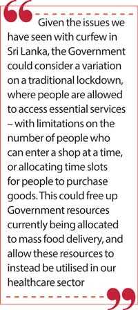 Given the issues we have seen with curfew in Sri Lanka, the Government could consider a variation on a traditional lockdown, where people are allowed to access essential services – with limitations on the number of people who can enter a shop at a time, or allocating time slots for people to purchase goods. This could free up Government resources currently being allocated to mass food delivery, and allow these resources to instead be utilised in our healthcare sector.