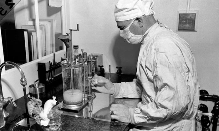 A scientist fills a vial with the BCG vaccine against tuberculosis in Albany, New York in 1947. ‘What made a huge difference was a community-based approach where people joined together to stop the spread of disease.’ Photograph: AP