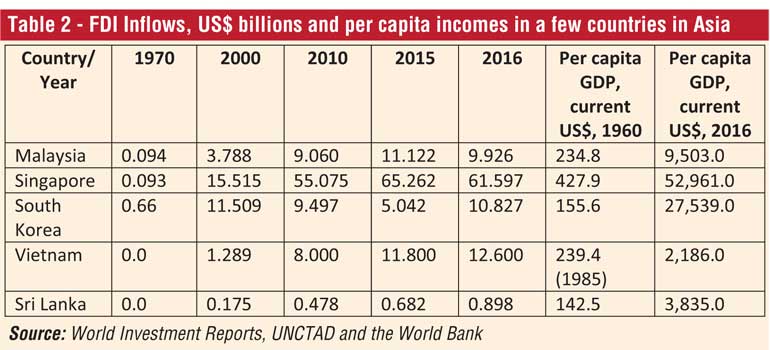 The major reason poverty has not been alleviated is due to the fact that investments, especially Foreign Direct Investments (FDI), have not been attracted to the country to set up manufacturing industries to create jobs and produce goods and services for export to earn the necessary foreign exchange; see table 2. FDI is required because of the scarcity of local capital, technologies and the absence of ready access to global markets on the part of domestic businesses.FDI has avoided the country due to the country risk involved. This could be due to certain actions of political parties (that gained power after 1956) which have tended to discriminate against people belonging to the minority communities numbering about 25% of the population. Tamils claim that they have been discriminated against in areas such as employment in the public sector, higher education and in the courts of law due mainly to the replacement of English with Sinhala as the official language in 1956.