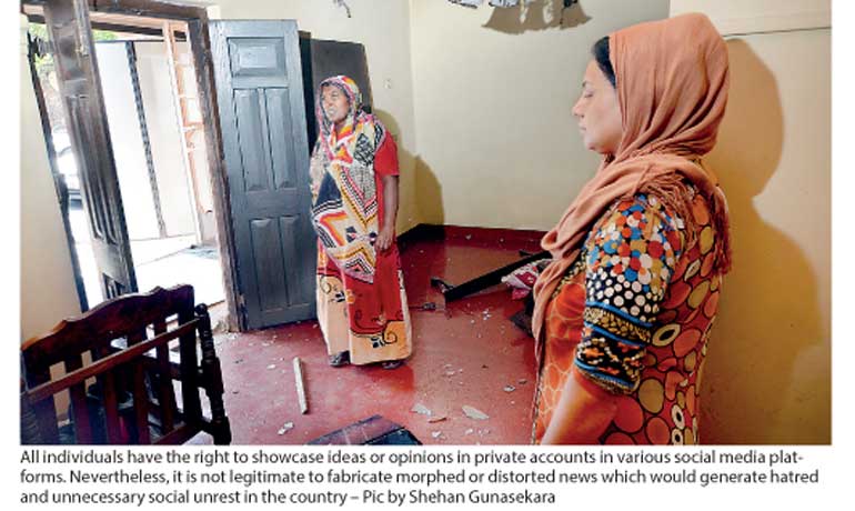 All individuals have the right to showcase ideas or opinions in private accounts in various social media platforms. Nevertheless, it is not legitimate to fabricate morphed or distorted news which would generate hatred and unnecessary social unrest in the country. In hindsight, the unprecedented spread of hate speech and distorted news in social media relating to the recent communal unrest, led the Telecom Regulatory Commission (TRC) to monitor all social media platforms including Facebook, Twitter, WhatsApp, etc., for the first time in Sri Lanka.
