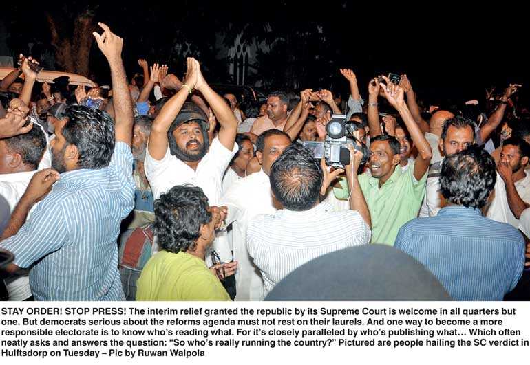 But Sirisena hesitated to take such a precipitate step. But this did not prevent Wickremesinghe from pursuing his goal of isolating the President and making a mockery of the Executive Presidency.