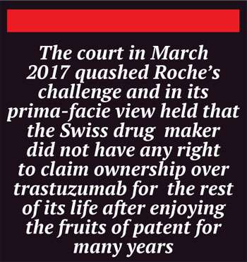 Herceptin. The court in March 2017 quashed Roche’s challenge and in its prima-facie view held that the Swiss drug maker did not have any right to claim ownership over trastuzumab for the rest of its life after enjoying the fruits of patent for many years. Roche is also under investigation by the Competition Commission of India (CCI) for alleged unfair business practices and competition norm violations including ‘frivolous litigation’ against competitors and misleading doctors by disparagement of competitors.