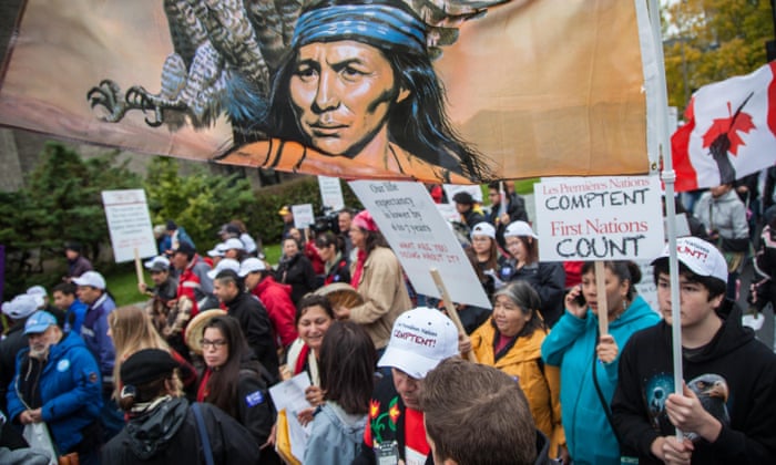 Protesters march to call for attention to First Nations concerns ahead of Canada’s election last year. Photograph: Cristian Mijea/Demotix/Corbis