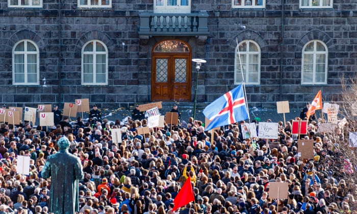 “He lied,” said Anna Mjöll Guðmundsdóttir, a tourism researcher. “These people, they say they’ve learned the lessons from what happened to us in 2008, but they’re still just hiding our money.” Tinna Laufey Ásgeirsdóttir, a university professor, agreed: “He’s not been forthright. If people had been informed of this they might have voted differently. The size of this demonstration shows how disappointed people are.”