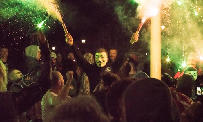 It’s exhilarating – until you see someone throw a firework at a police horse. But that was just one guy, clearly an idiot, and he deserved to be arrested. I’ve spoken to a number of police each year and some have expressed sympathy as many have had their own pensions and benefits cut. However, the majority of them are arrogant and see themselves as better. They view us as a bunch of criminals, though we are also protesting for their sake.